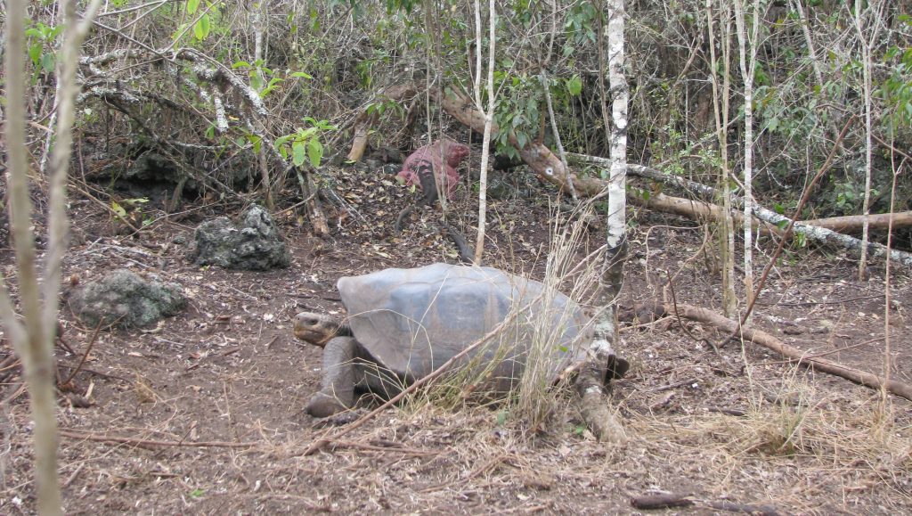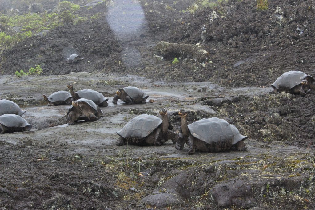 “This morning we headed up the old hunter’s trail and, much to our surprise, where there were no tortoises the few days before suddenly they were all over. There were tiny ones and big ones, males and females, tortoises all over…we then got serendipitously sidetracked and found ourselves in the thick of many highly sculpted and saddle-backed tortoises on a side slope to the volcano.