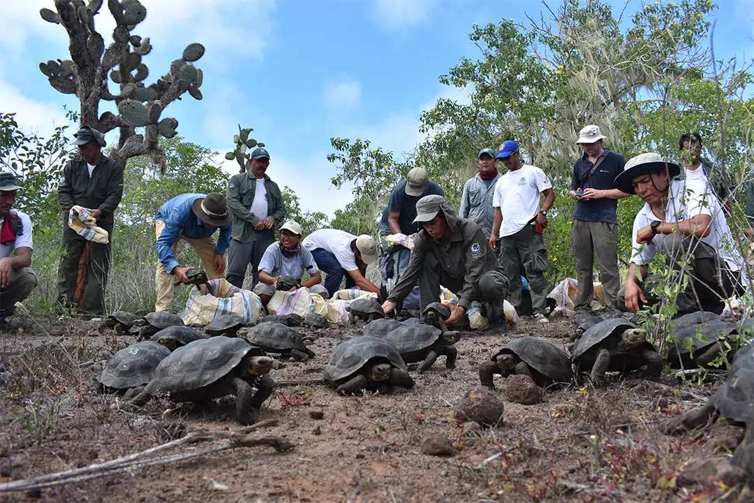 Este compromiso a largo plazo para restaurar las poblaciones de tortugas gigantes ha sido liderado por la Dirección del Parque Nacional Galápagos, con la colaboración de aliados clave a lo largo de las décadas, entre ellos, la Fundación Charles Darwin en los primeros años y, en las últimas décadas, Galápagos Conservancy.