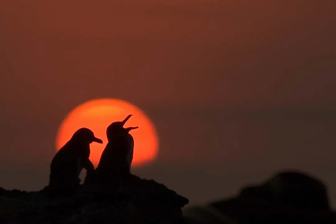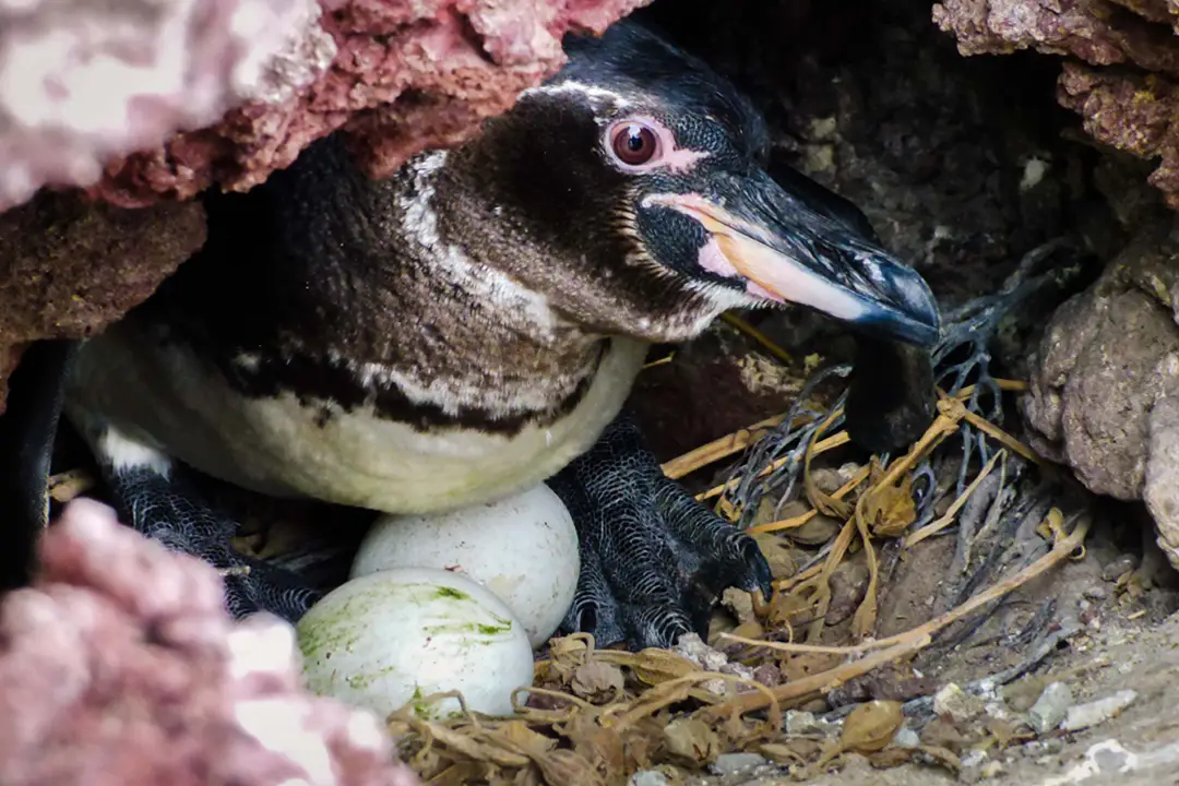 Y en las frías aguas del occidente del archipiélago, los pingüinos alimentan a sus polluelos con los frutos de la reserva marina.